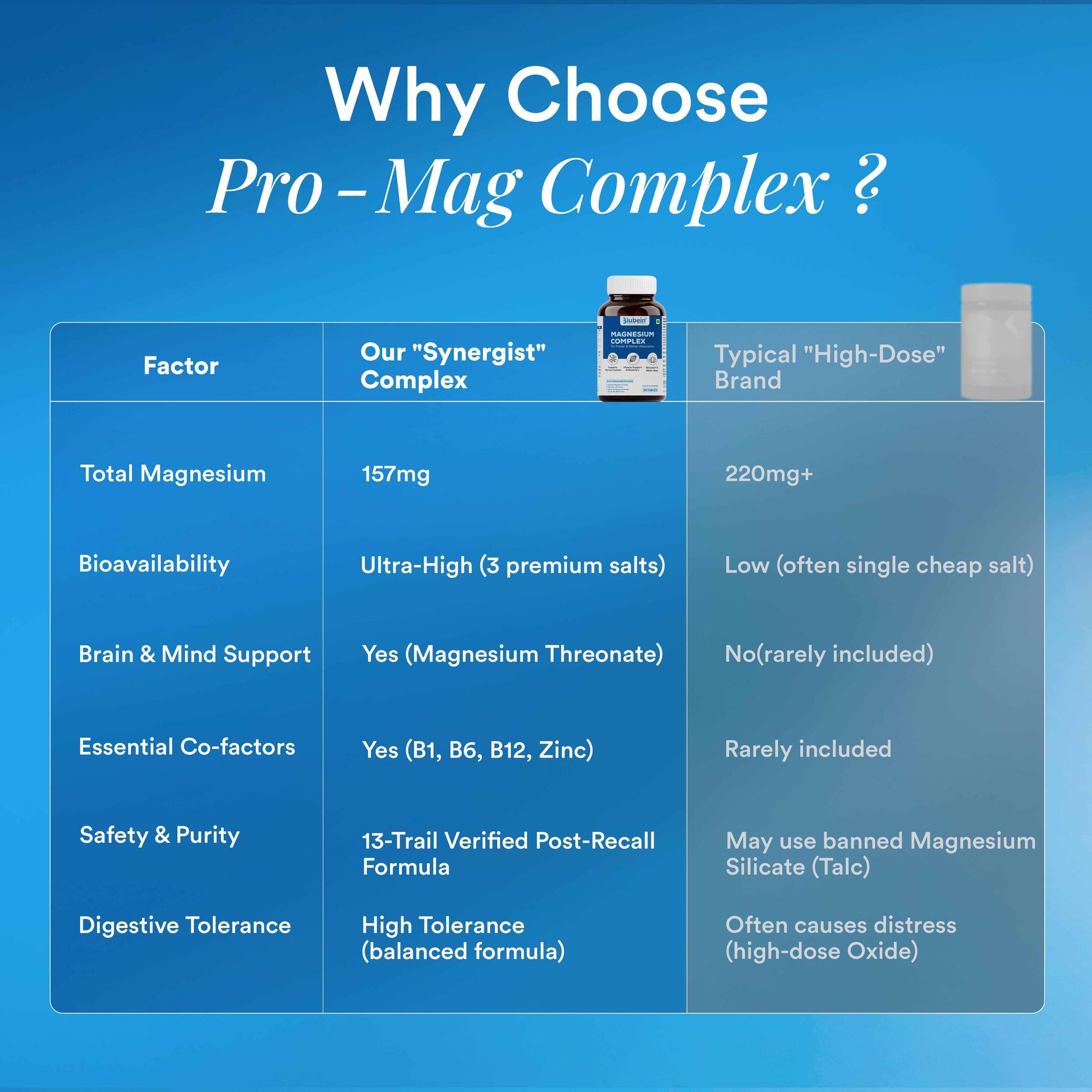 | Bioavailability | Ultra-High (3 premium salts) | Low (often single cheap salt) |